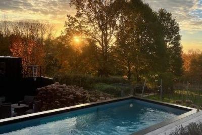 Zorgeloos genieten van een privé-wellnestje met een prachtig uitzicht op de wijngaard, de professionele Finse sauna, de infraroodcabine, de relaxruimte, de hottub, het verwarmde buitenzwembad, de emmerdouche, het bos en de toffe tuin. Waar je bij ons ook vertoeft, je aanschouwt steeds het rustgevende tafereel van onze wijngaard, tuin en bos.